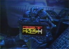 Get Fresh was set aboard a space ship, the Millennium Dustbin, with hosts Charlotte Hindle, Adrian Mole's Gian Sammarco and Gareth Evans (aka Gaz Top). The space ship would turn up at a different venue each week, usually a public park, where stages would be set up for the performers. Scottish, Tyne Tees, Ulster, Border and HTV among others would each week take their turn at getting the spaceship around the country on Saturdays, while Border took control on Sunday mornings.